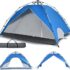 Portable et léger – Cette tente pop-up se replie à une taille compacte de 58 × 12 × 12 cm et se range dans le sac de transport correspondant. Que vous soyez en camping, en déplacement avec le sac à dos ou en voyage d’une autre manière, il est léger et ne prend pas trop de place et d’énergie. Facile à installer – Deux tiges en fibre de verre se croisent sur l’auvent. Ensuite, il vous suffit de fixer les quatre coins au sol avec les piquets attachés. Une tente multifonctionnelle peut rapidement être créée grâce à l’installation immédiate. ☂ [Taille pour 1 personne] – Une fois ouverte, la tente mesure 120 x 120 x 190 cm. Que vous soyez à l’intérieur pour prendre une douche ou que vous vous asseyez pour pêcher, la taille est très appropriée.