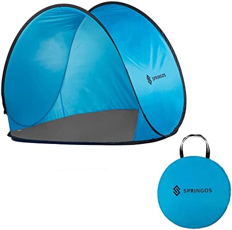 SPRINGOS Tente de plage pop-up automatique – Protection UV – Protection contre le vent – Avec sol – Tente pour bébé – Tente d’extérieur